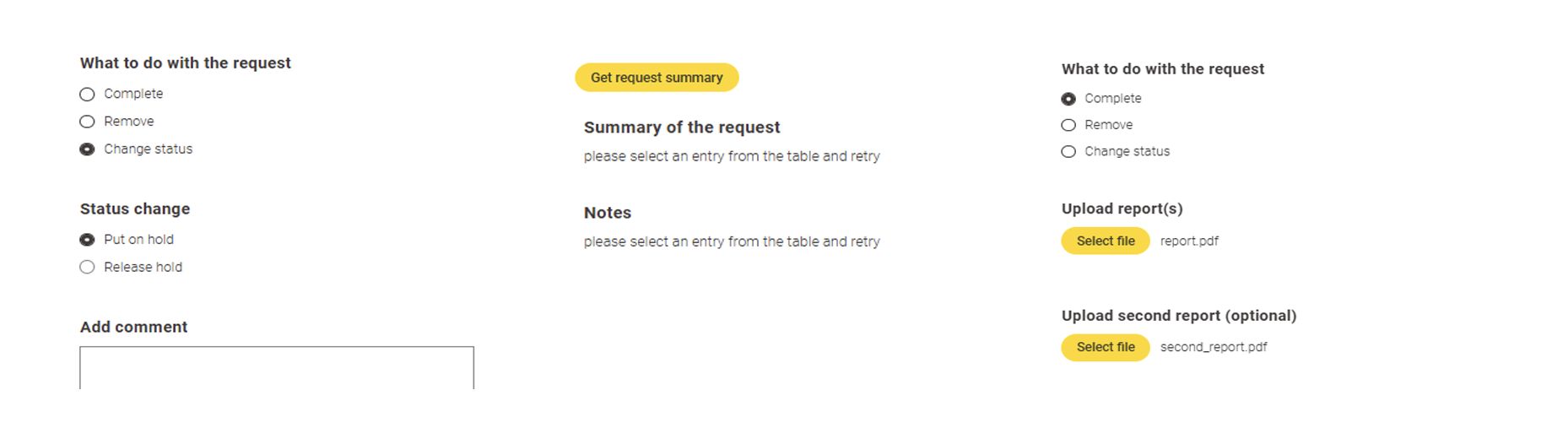 Using KNIME to build a frontend UI with data apps helped Selvita simplify request handling significantly. The UI allowed purification specialists to update request statuses, send notes back to requesters, and attach reports upon analysis completion.